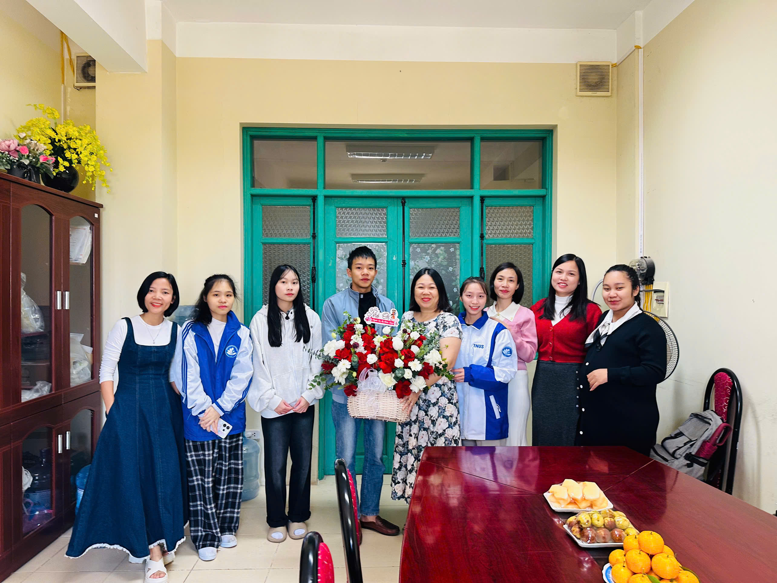 Buổi chúc mừng diễn ra thân mật, vui tươi và tràn đầy tình cảm. Những bó hoa tươi thắm cùng lời tri ân chân thành là món quà ý nghĩa mà sinh viên dành tặng các thầy cô – những người đã tận tâm đồng hành, truyền cảm hứng và dìu dắt các em trong suốt hành trình học tập và rèn luyện.